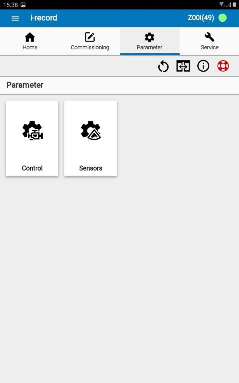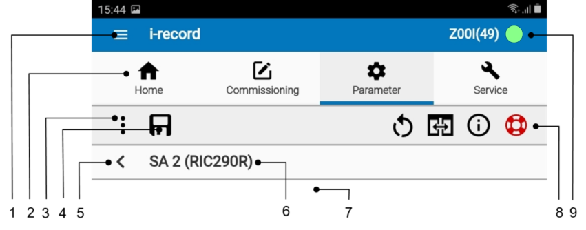 In the light grey bar, context-specific functions appear with which functions can be executed. For example, a memeory icon appears under Parameters.