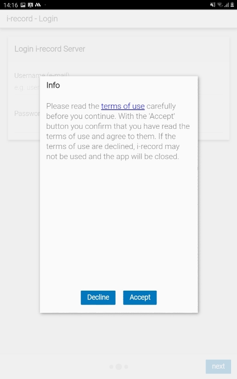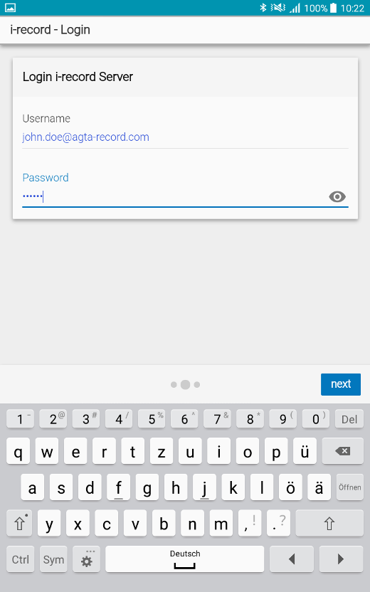 When the i-record app is started for the first time, the user is automatically guided through an initial login, which initialises the application. Therefore you can find under the following link a video that shows the download and installation of the i-record app via the Google Play Store, as well as the initial registration.