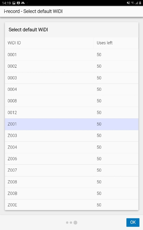 For each WiDI in the license pool, the user receives a valid license with 50 door accesses. From this list, the own WiDI must now be selected as the default WiDI.